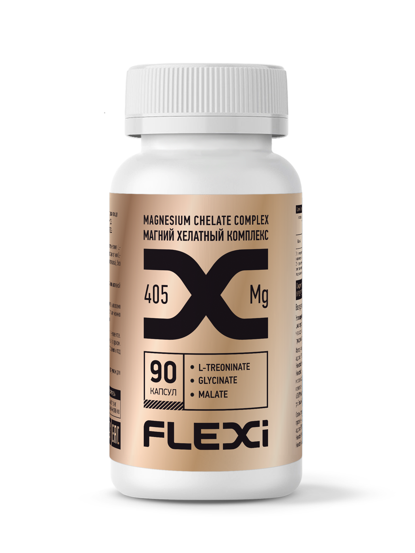 L-треонинат (аминокислотная хелатная форма магния L-треонина), магния глицинат (аминокислотная хелатная форма магния L-глицина), магния малат, капсула (гидроксипропилметилцеллюлоза), без добавления красителя пищевого.