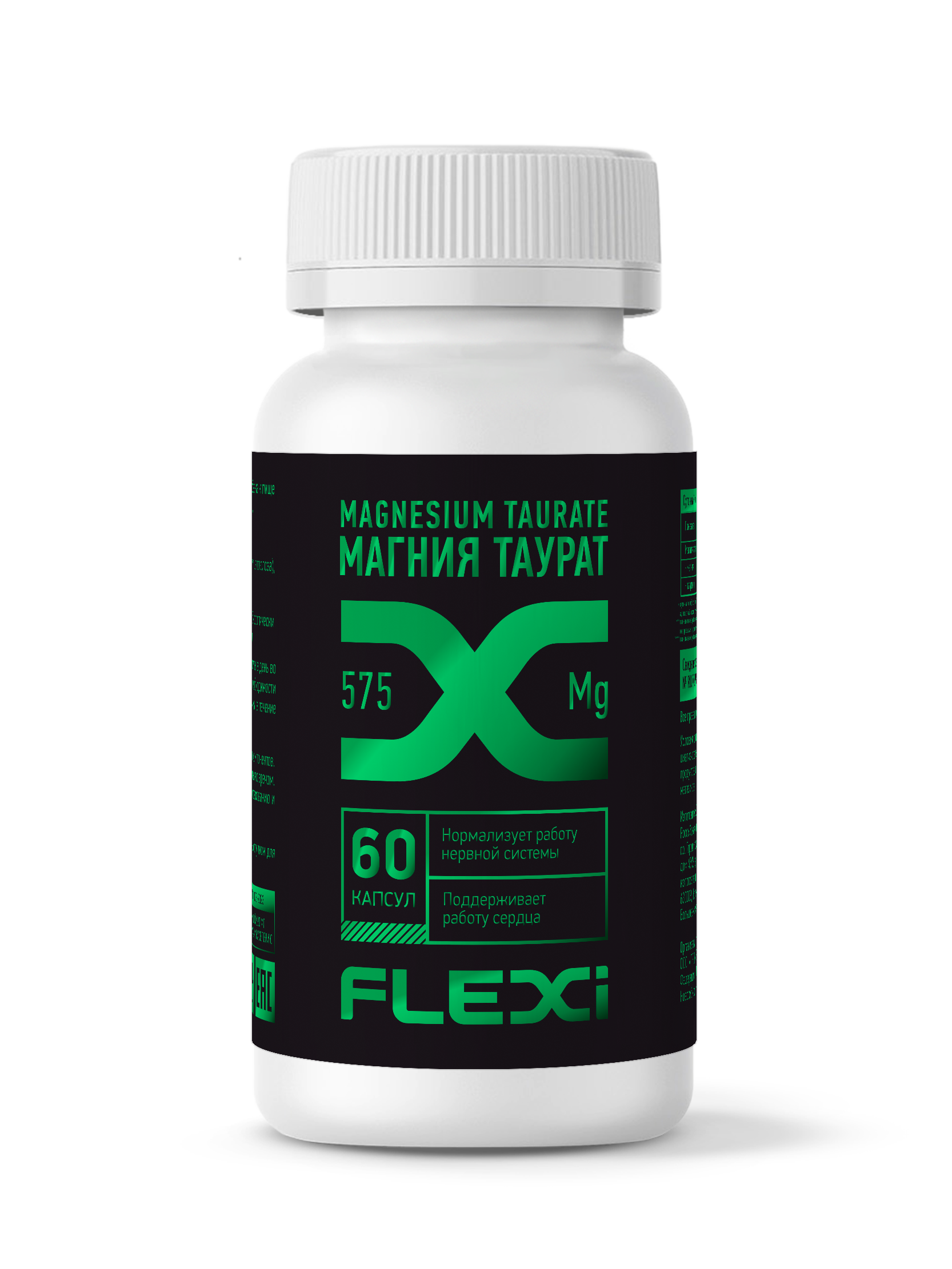 Магния таурат; капсула (гидроксипропилметилцеллюлоза - носитель (Е464); без добавления красителя пищевого (Е171).